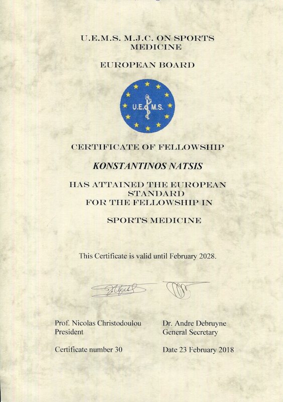 Καλώς ήρθατε στην Ιστοσελίδα μου, είμαι ο Νάτσης Κωνσταντίνος Ορθοπαιδικός Χειρουργός και Καθηγητής στο Αριστοτέλειο Πανεπιστήμιο Θεσσαλονίκης. Στη διαδικτυακή ιστοσελίδα μου μπορείτε να βρείτε χρήσιμα στοιχεία για το χώρο του ιατρείου, για εμένα, αλλά και να ενημερωθείτε για ενδιαφέροντα θέματα και εξελίξεις της Ορθοπαιδικής Χειρουργικής. Μου έχει απονεμηθεί ο τίτλος της Αθλητιατρικής ειδικότητας από την U.E.M.S. M.J.C. on Sports Medicine (πατήστε εδώ). Παρακαλώ, μη διστάσετε να επικοινωνήσετε μαζί μου, χρησιμοποιώντας τη φόρμα επικοινωνίας.